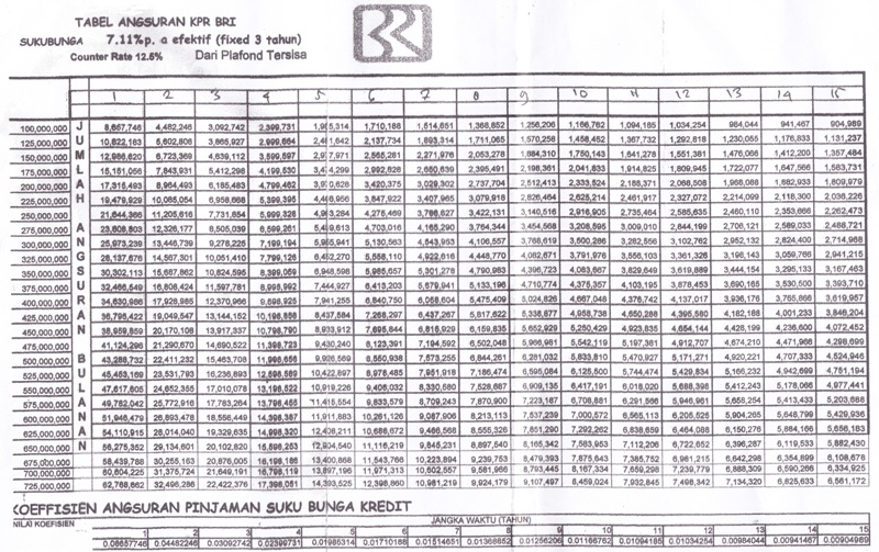 9 pemikiran pada “Tabel cicilan rumah bank BRI