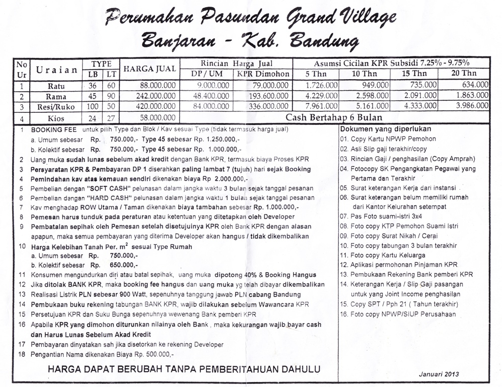 saya sudah akad kredit di pasundan grand village bln juni 2013 dan angsuran sudah mulai jalan sampai sekarang..namun saya sangat kecewa karna sampai sekarang april 2014 belum ada serah terima dari developer…fasilitas listrik belum terpasang ..jalan belum selesai…dan sudah beberapa bulan yg lalu pembangunan berhenti./terbengkelai…