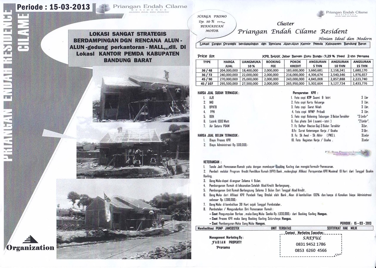 Rencananya, perumahan ini rencananya akan berdampingan dengan kantor Pemkab Bandung Barat, sehingga pasti akan menambah nilai jual perumahan ini. Mengamati harga rumah (khususnya perumahan) yang terus semakin menanjak, tidak mustahil nantinya harga perumahan ini akan naik 100 jutaan dalam waktu 1 atau 2 tahun lagi. So.. mari kita simak informasi perumahan Priangan Endah Cilame ini.