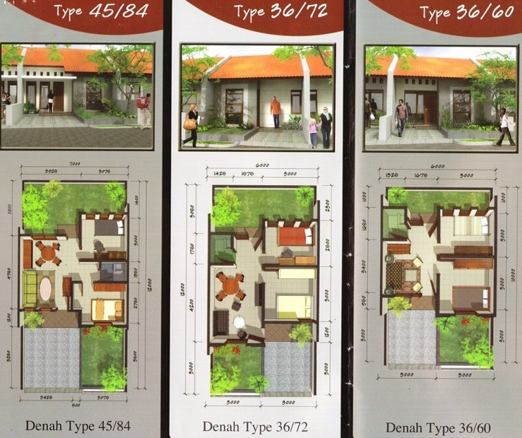 Desainnya mulai tipe 22 , 36, 45 dan ruko.