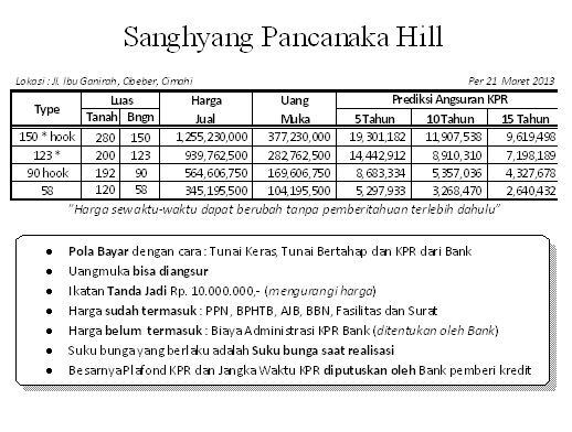 Kembali, mari kita tinjau kemabali harga rumahnya serta contoh pola pembayarannya :