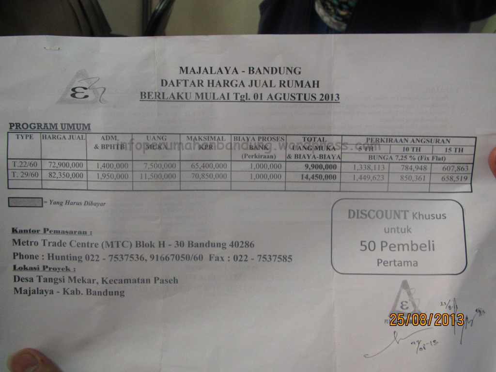 Berikut adalah salah satu rumah subsidi yang sebenarnya juga hadir di pameran rumah subsidi di jakarta beberapa bulan lalu, yaitu Pesona Bukit Bintang. Walau IPBblog tidak berhasil mendapatkan brosur harganya, tapi IPBblog berhasil mendapatkan gambar daftar harganya.