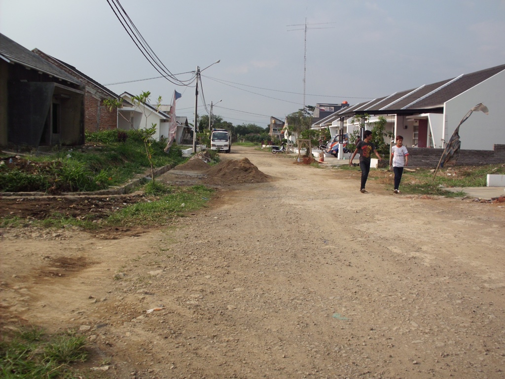 Masuk ke lokasi perumahan tampak jalan memang belum baik, karena faktor sedang proses membangun kali ya… jadi jalan akan dibereskan setelah semua unit hampir jadi alias terjual habis..