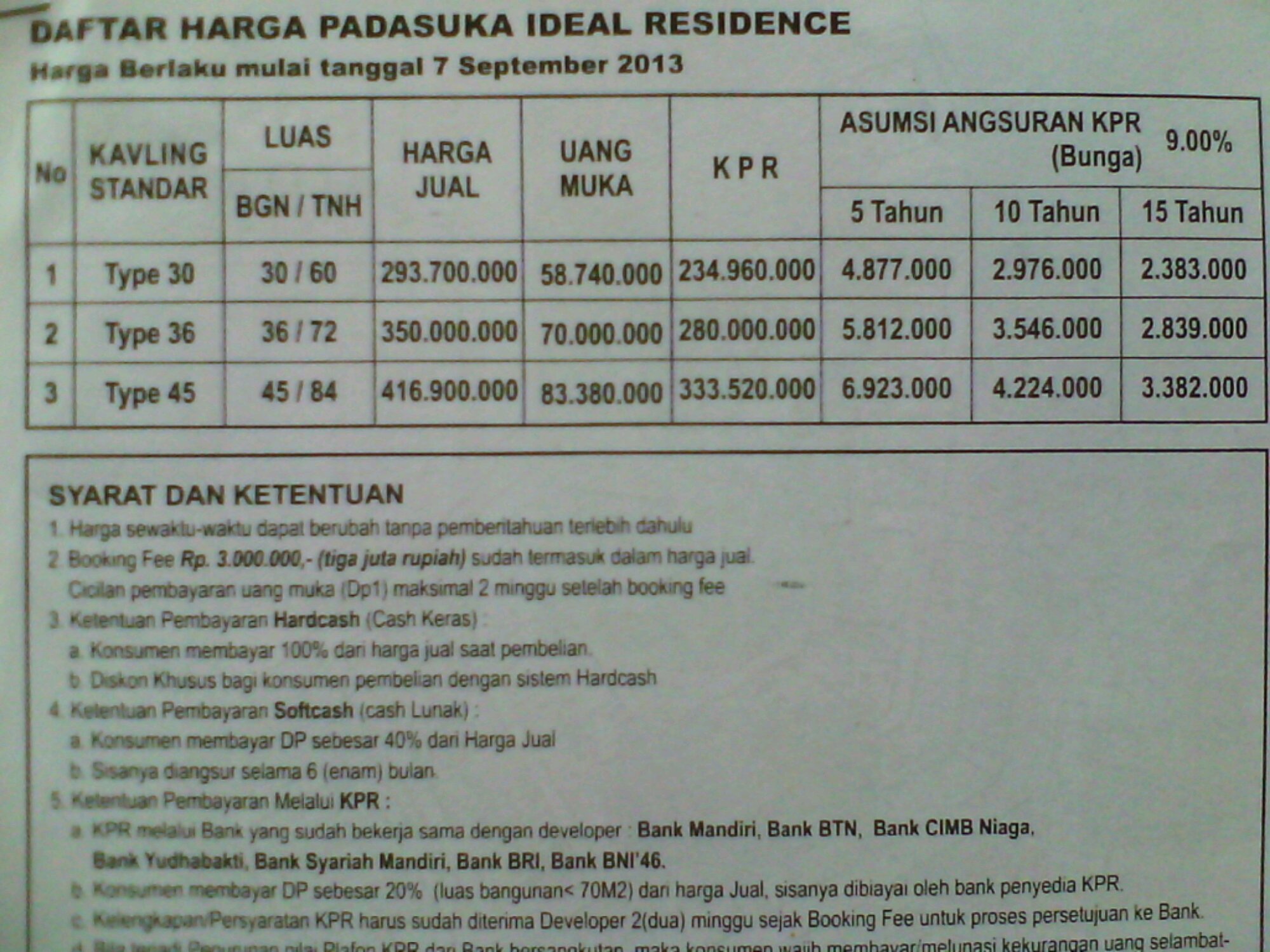 Daftar harga di atas, adalah harga baru per 7 september 2013.