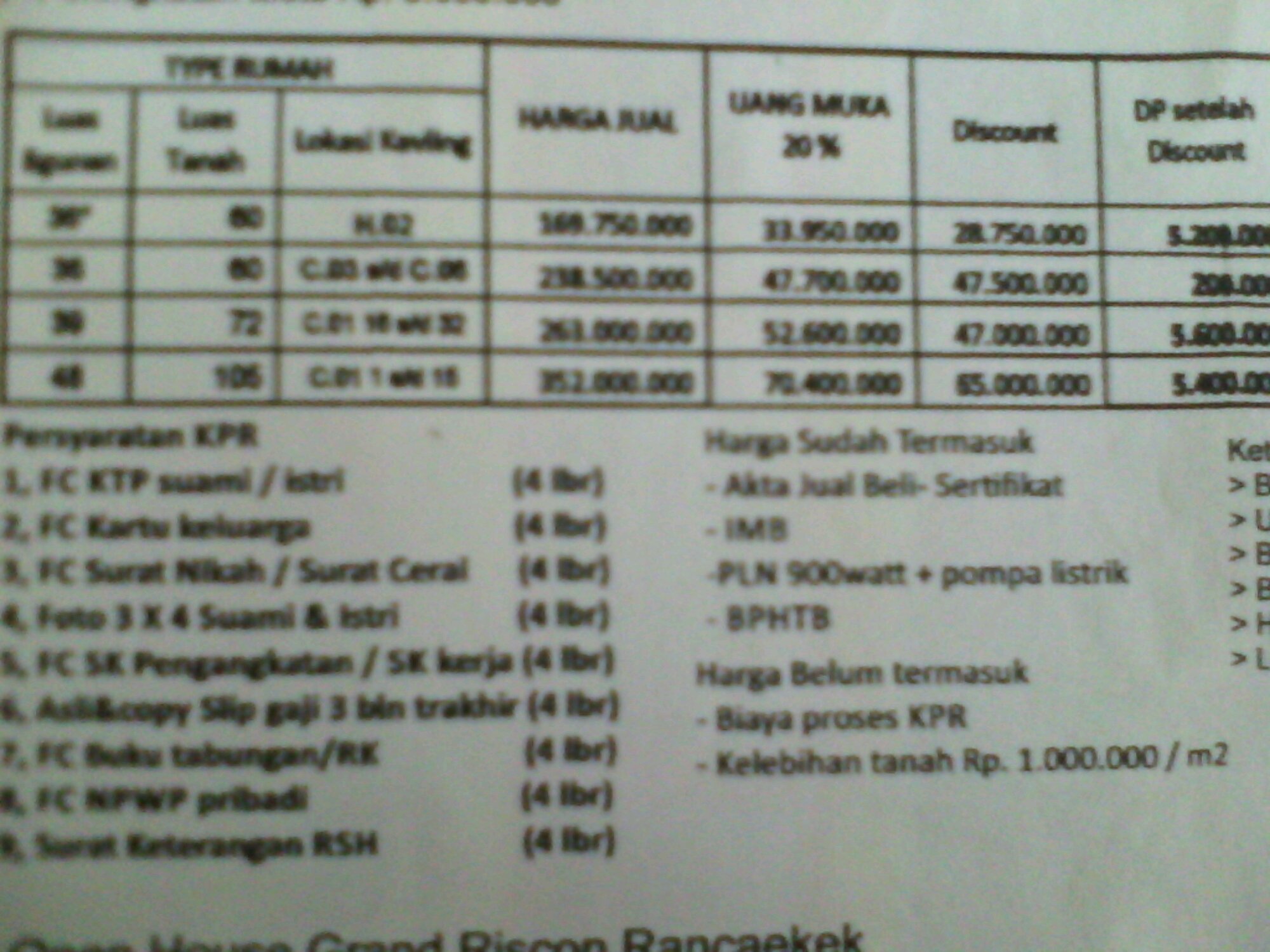 tipe 36/60 = 238,5 jt (blok C3 s.d C6)