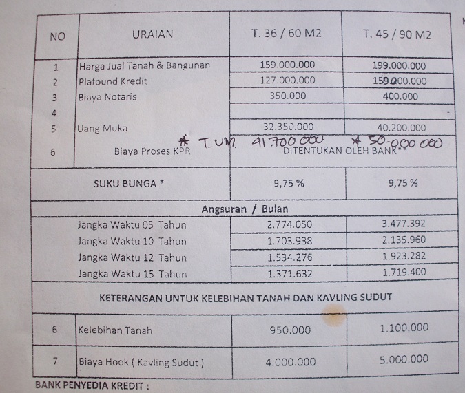 Tipe 36/60 dengan harga cash tidak lebih dari 170 juta, dengan total UM 41,7 juta serta cicilan 15 tahun hanya 1,3 jutaan.
