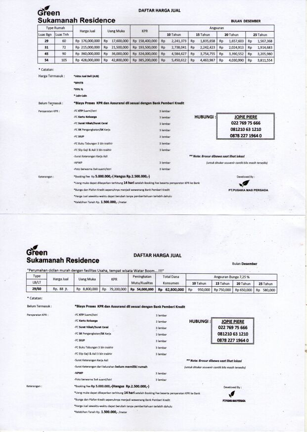 Berikut harga terbaru perumahan Grand Sukamanah per Desember 2013.
