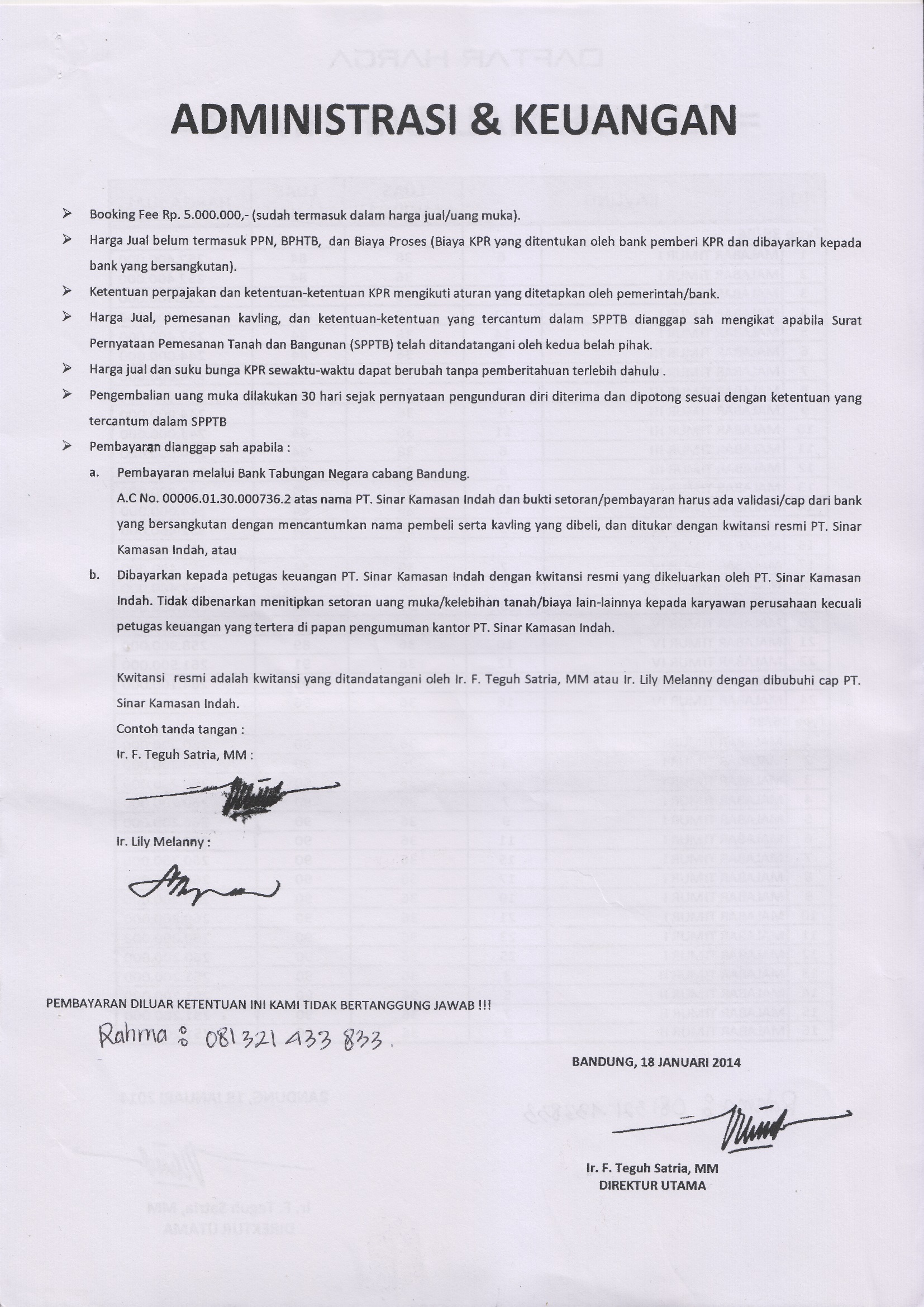 Dengan nilai booking = 5.000.000 (sudah termasuk uang muka)