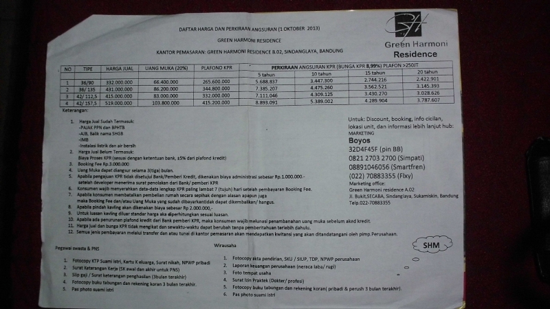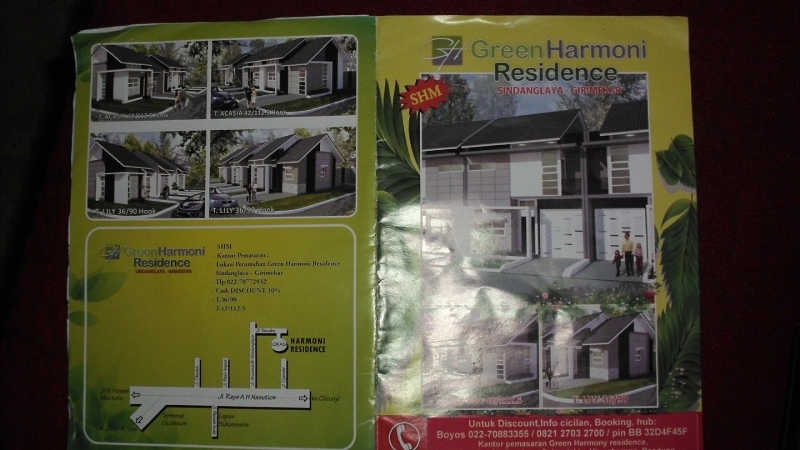 Tidak sengaja sedang main ke tempat teman, ada brosur perumahan.. karena spt gak mungkin dibawa, akhirnya difoto aja deh.. Namanya : GREEN HARMONI RESIDENCE.