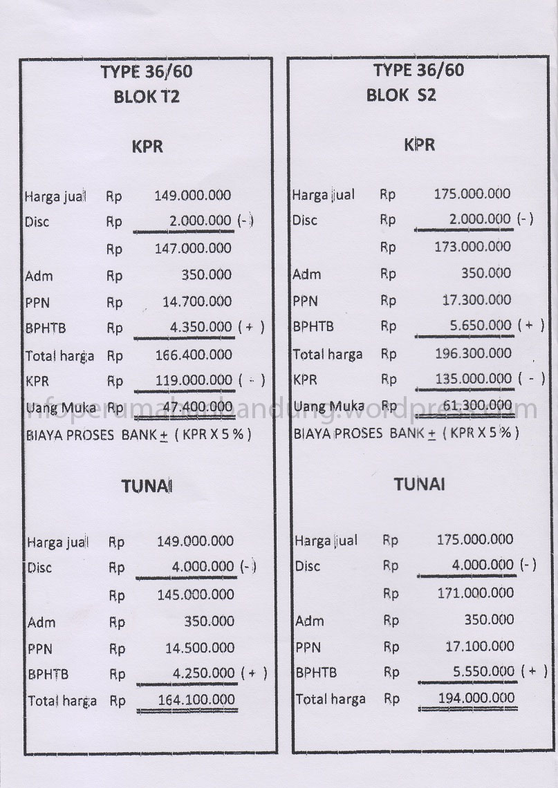 Tapi.. sekarang ada tahap 2, so.. karena brosur depannya gak ada.. langsung to the point aja pricelistnya