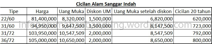Alam Sanggar Indah, sekilas price list Februari 2014