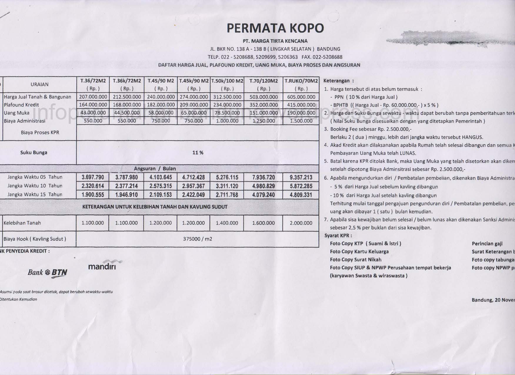 Dulu pernah Ipbblog update artikel perumahan ini yang harganya per mei 2013. Kemudian naik per November 2013, namun harganya masih bertahan hingga sekarang (semoga hehe).