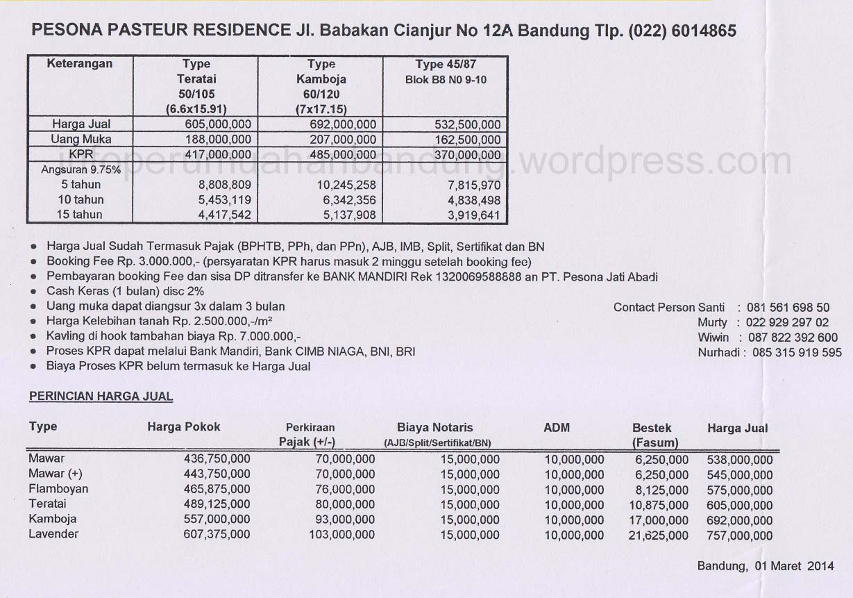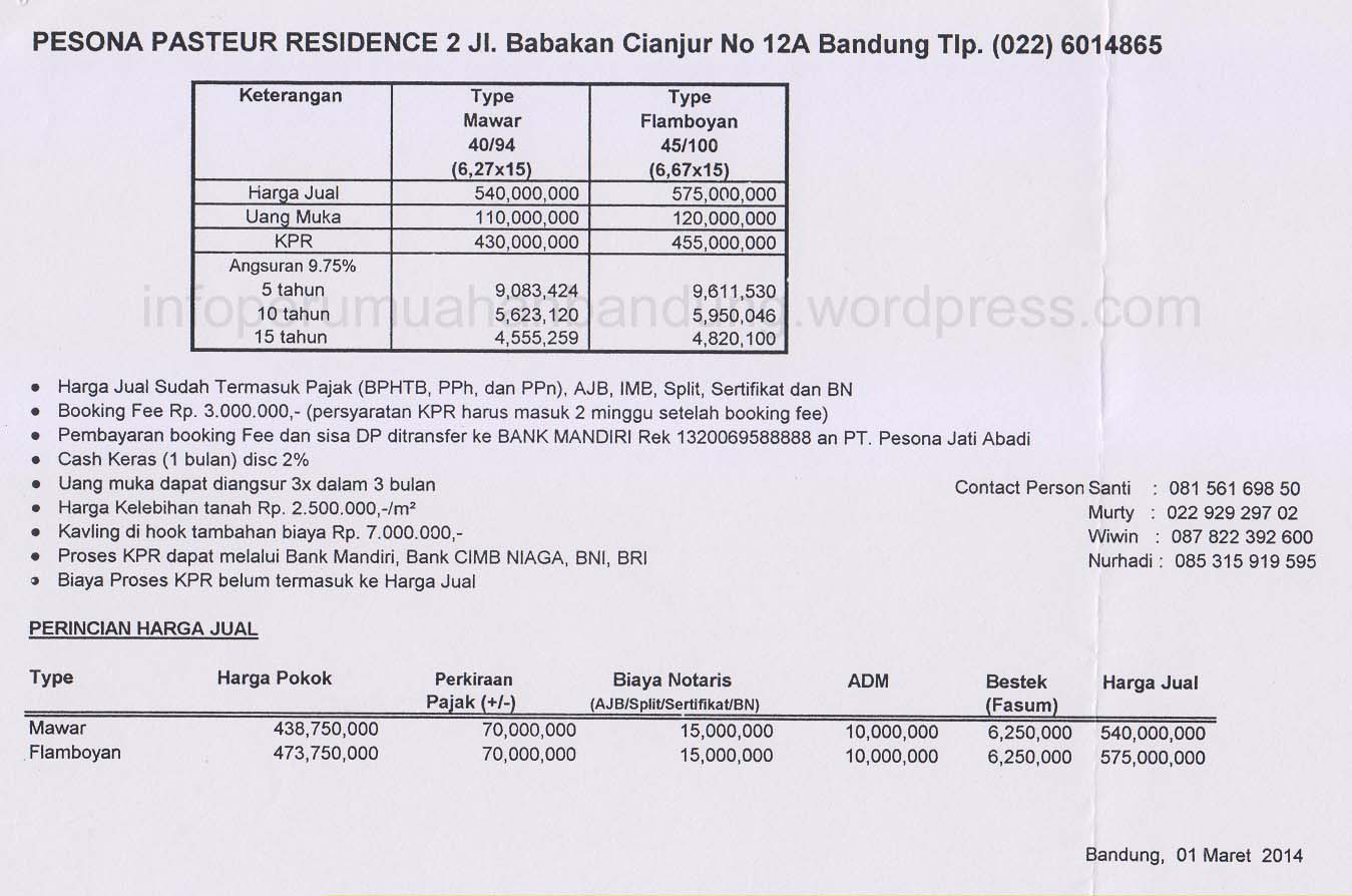 Tipe yang lebih besar harganya semakin mahal ya.. wajar deh.. namanya juga rumah deket kota, deket tol pasteur..