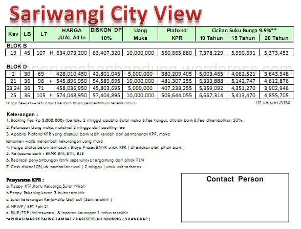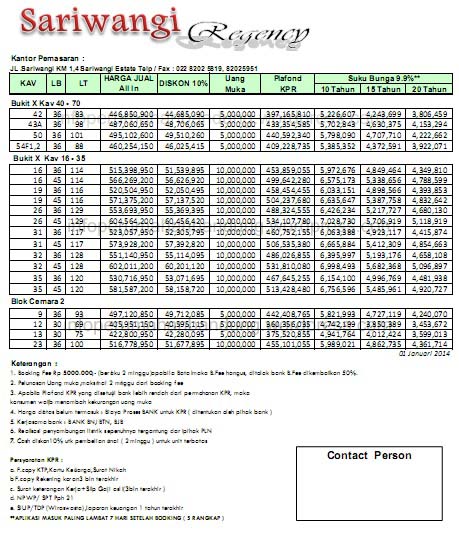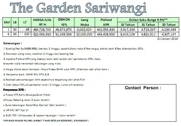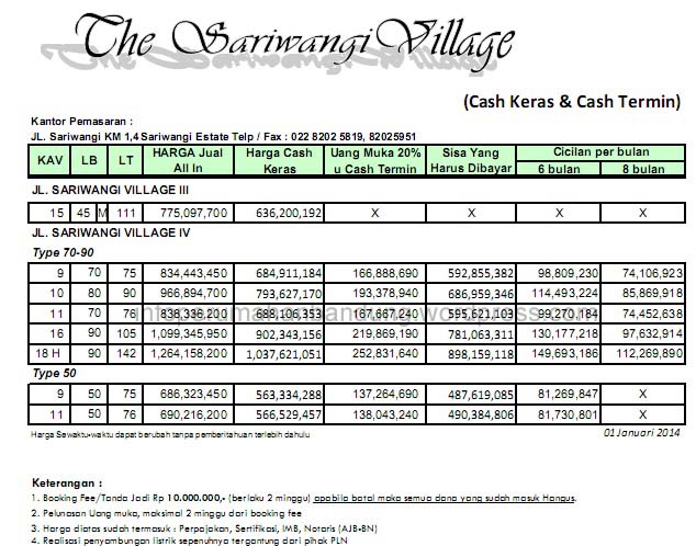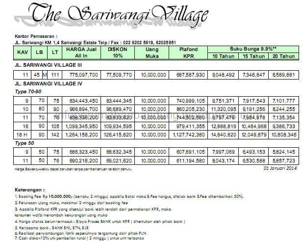 Ohya, untuk Sariwangi Village, booking feenya lbih besar, yaitu 10 juta, karena perumahan agak lebih eksklusif.