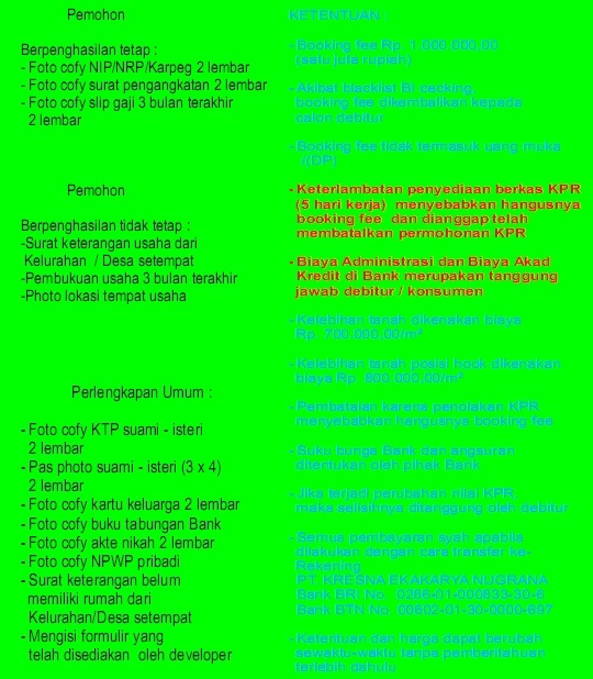 yang pasti sayaratnya blm punya rumah, penghasilan maks 3,5 juta, kalo bisa pegawai tetap