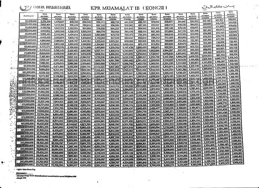 Berikut tabel cicilan muamalat per 2014, daftar masih mengacu ke bulan juli 2013.