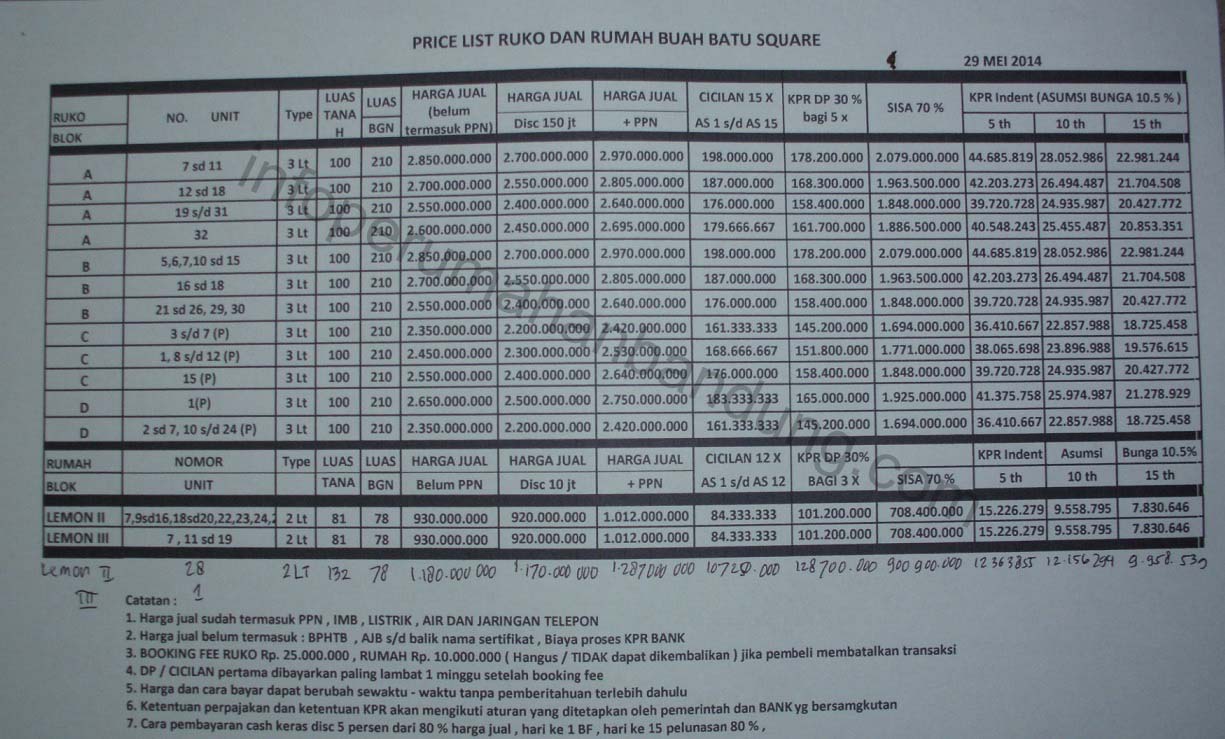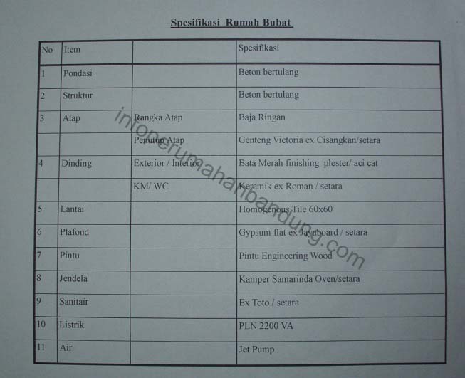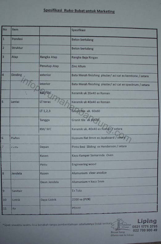 berikut spesifikasi bahan bagunannya baik rumah dan ruko