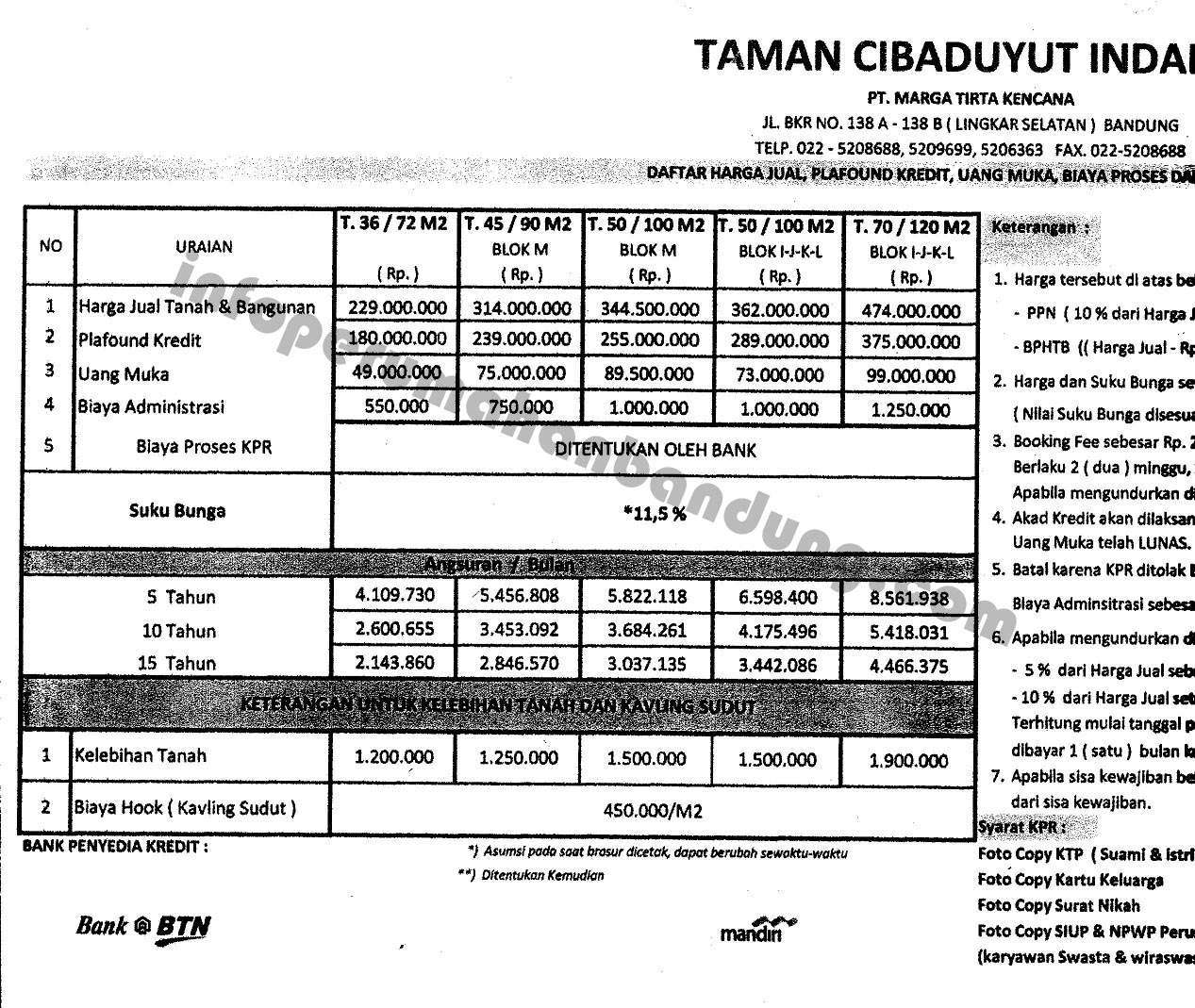 Perbandingan harganya tetap, tapi ternyata di Taman Cibaduyut Indah-1 masih ada tipe 36 yang tidak terdapat di Taman Cibaduyut Indah-2. Dan pastinya tipe 36 jauh lebih murah.. 🙂