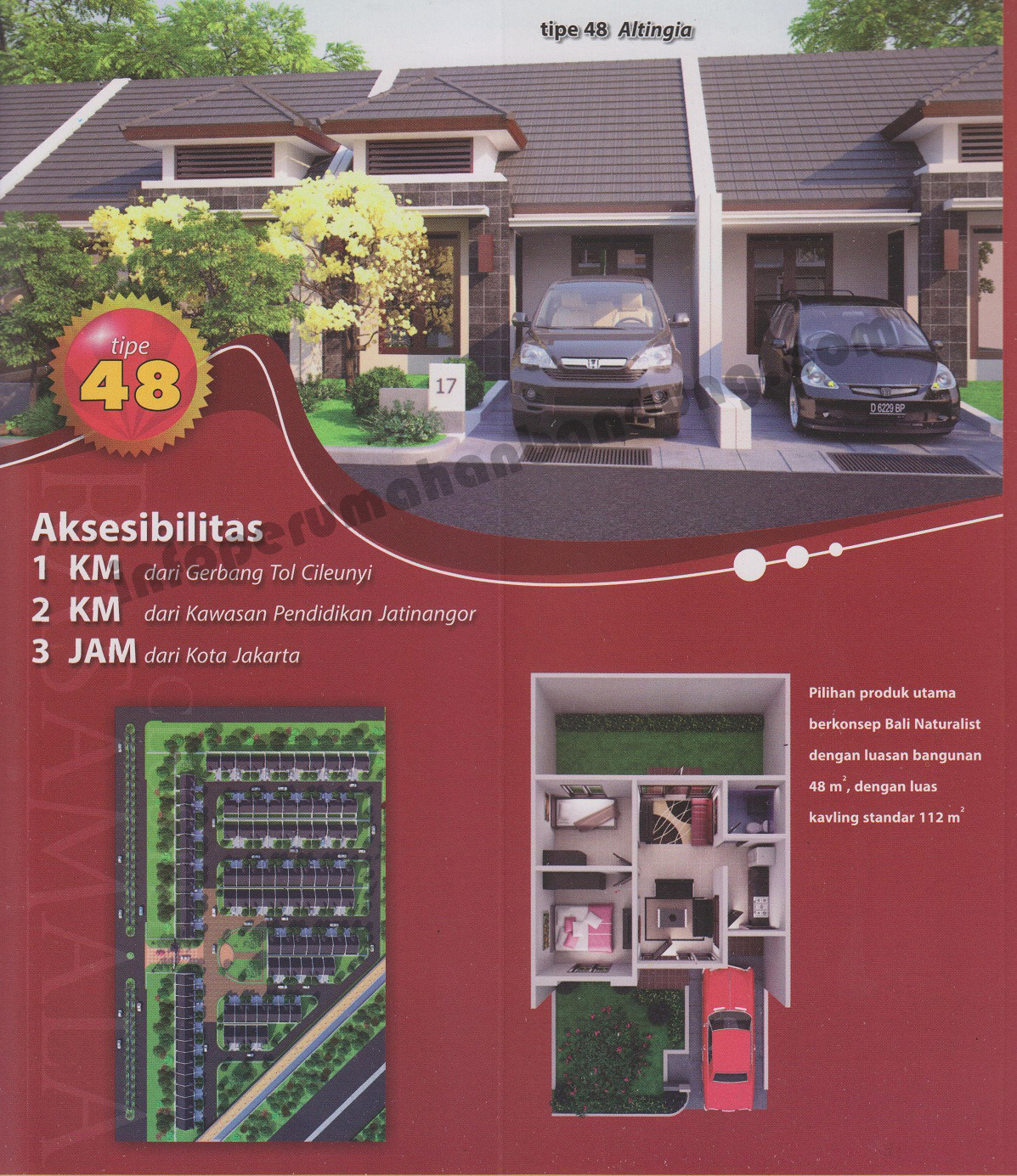 Lokasinya di jalan percobaan yang arah dari cileunyi ke bunderan cibiru.. Dengan One Gate System, akan menambah aman dalam komplek. Akses angkutan umum dan dekatnya pintu tol cileunyi akan jadi nilai plus, jadi kalo punya mobil pribadi bisa mudah mencapai perumahan ini..