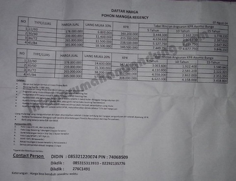 Perumahan Pohon mangga regency menurut Ipbblog :