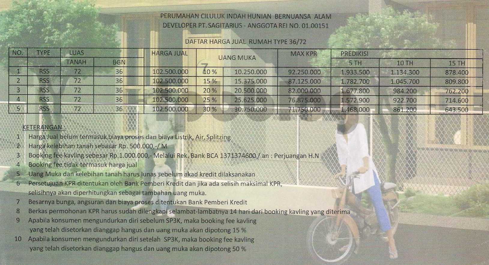 Harga : 102.500.000,-, Uang muka 10% ,  Booking fee 1 jt,  KPR melalui BTN Jl. Jawa No.7 Bandung