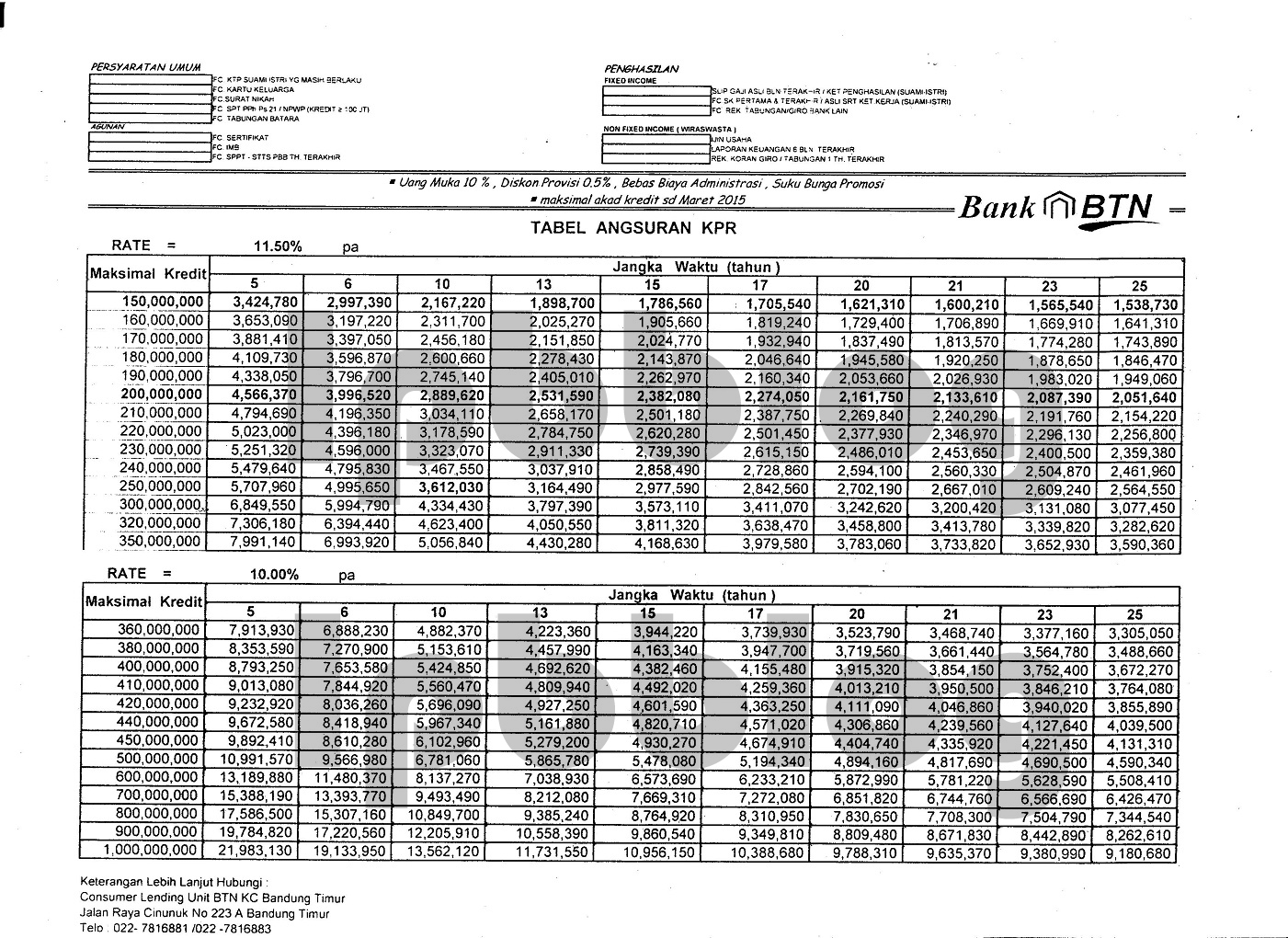 Tabel KPR BTN Konvensional 2015