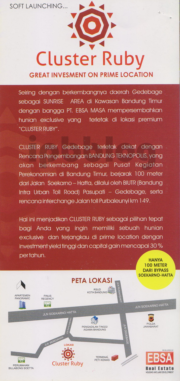 Perumahan yang dikembangkan oleh ebsa properti ini berada di lokasi yang prospektif, nah.. ipbblog ketikkan sesuai brosurnya ya..