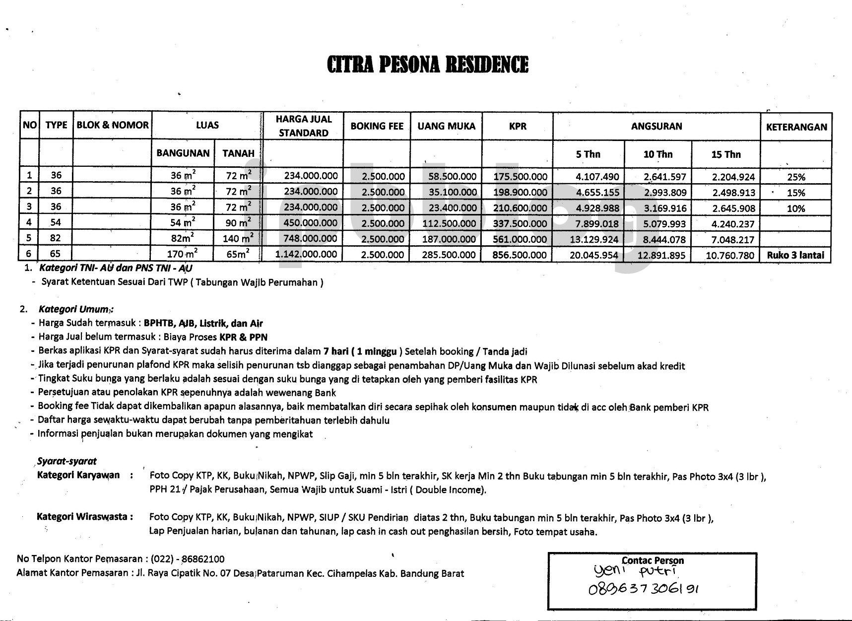 Untuk Perumahan citra pesona residence ini siapa yg bertanggung jawab ya ? saya sedang mencari PIC yg bernama Hardi,hingga saat ini menghilang dari kontak saya,saya hanya mau menanyakan kelanjutan proyek perumahan tersebut sampai dimana follow up nya,saya tanya beberapa kali lewat WA tidak dibalas hanya dibaca saja.