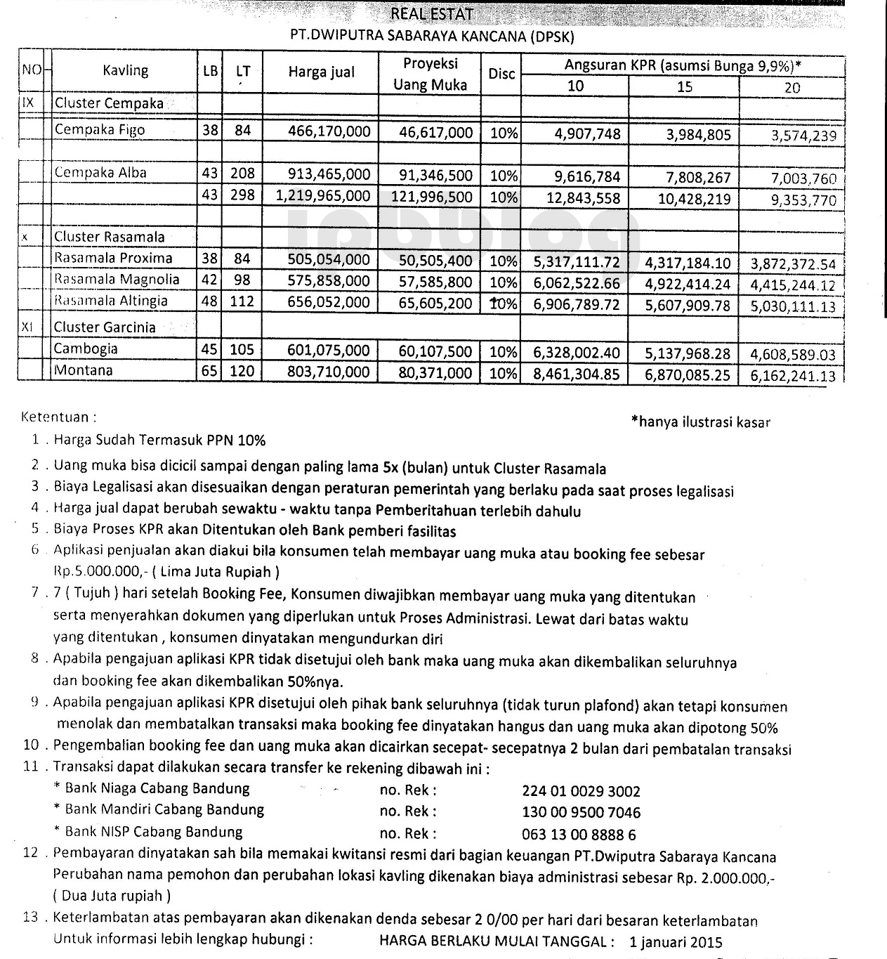 Terakhir tahun lalu ipbblog berikan artikelnya, namun sekarang tentunya sudah naik harganya.. perumahan yang dekat dengan pintu tol cileunyi serta pusat pendidikan jatinangor ini cukup bagus.. apalagi masjidnya yang ipbblog pernah singgahi, sayang ipbblog belum sempat ke sana kembali untuk ambil penampakannya..