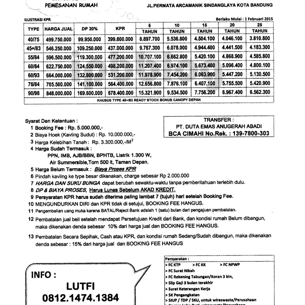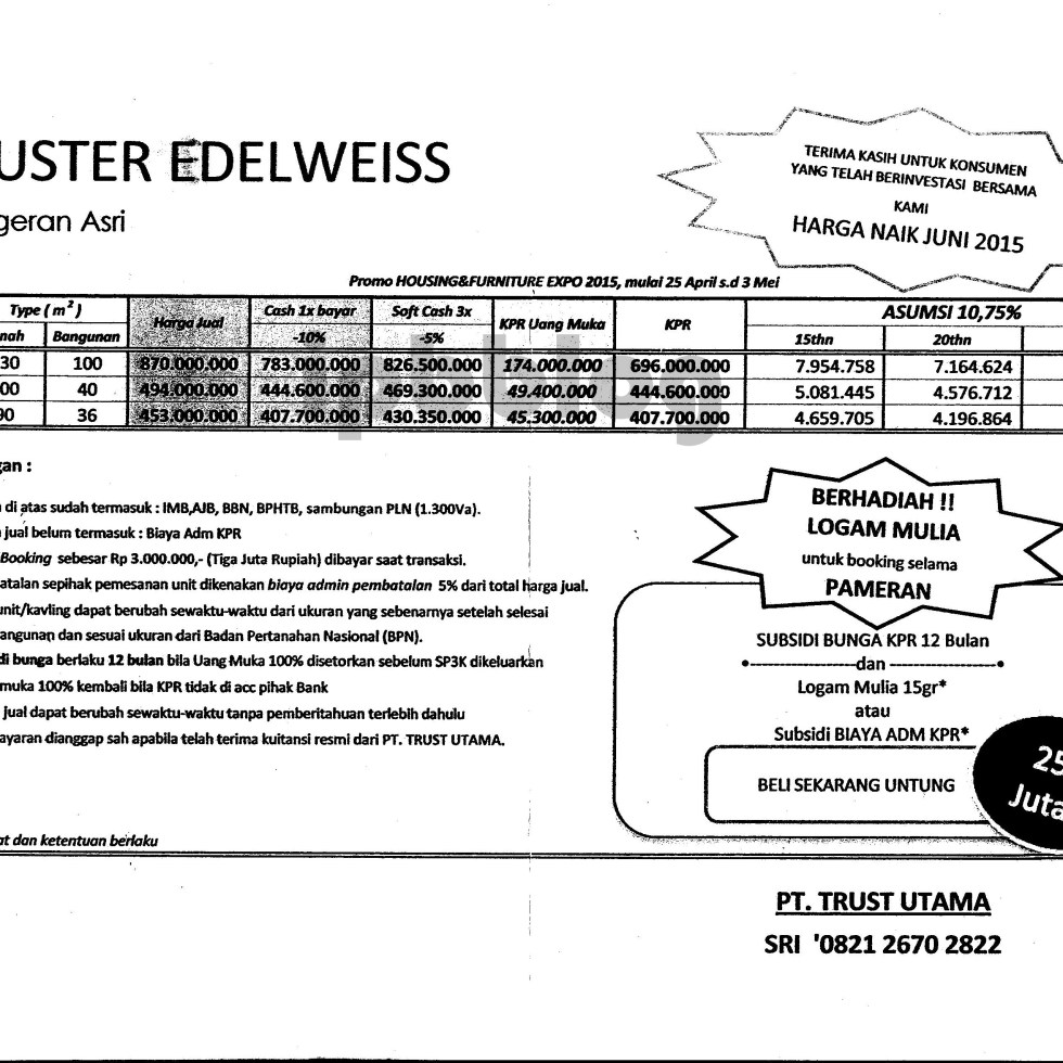 Edelweiss Residence, Cipageran, 2015 Mei 2015, Harga tetap cicilan naik