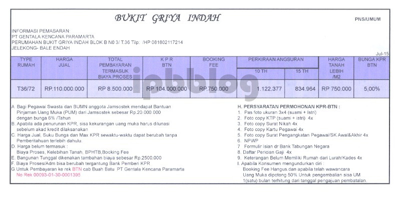 Alhamdulillah akhirnya dapat juga brosur daftar harga perumahan subsidi, Bukit Griya Indah, yang terletak di dekat perbatasan ciparay-baleendah..