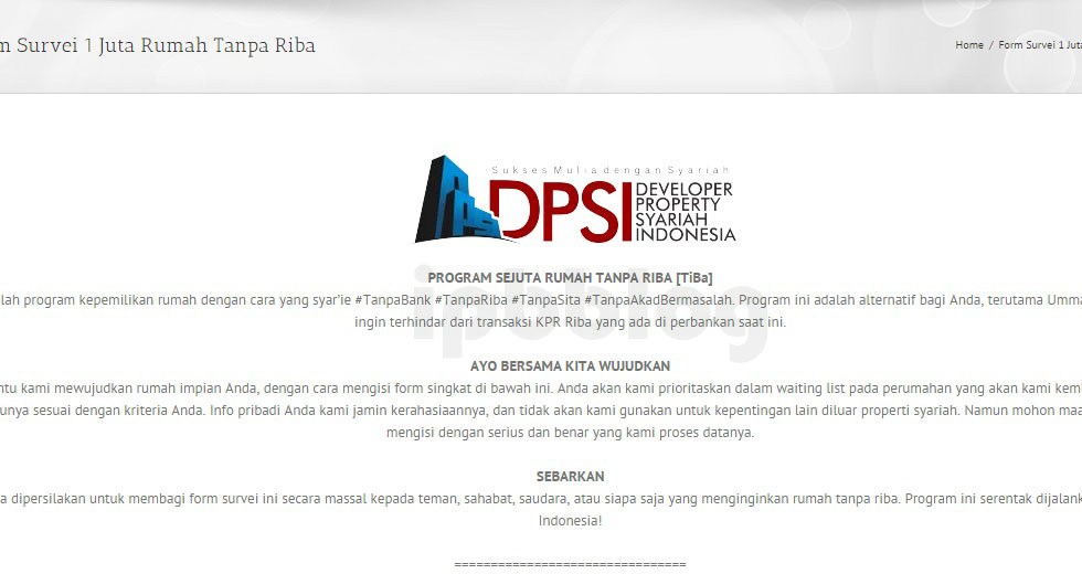 Ingin program rumah murah dari developer syariah, coba isi daftar survey ini..