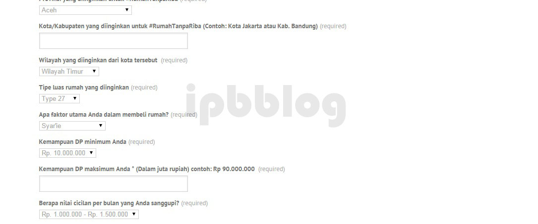 Dan masih ada beberapa lagi informasi yang dapat kita berikan.. Tapi untuk itu, tolong isi sesuai dengan kondisi real kita agar developer syariah bisa menyesuaikan dengan harga yang sudah terkumpulkan dari hasil survey, lalu bisa mereka (developer syariah) pertimbangkan.