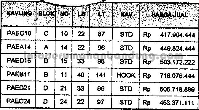 Pesona Asri Estate, tambahandata kavling yang belum terjual