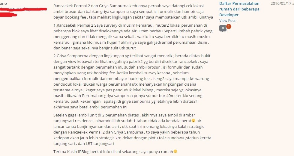 Testimoni dari salah satu pembaca Ipbblog dalam mencari rumah