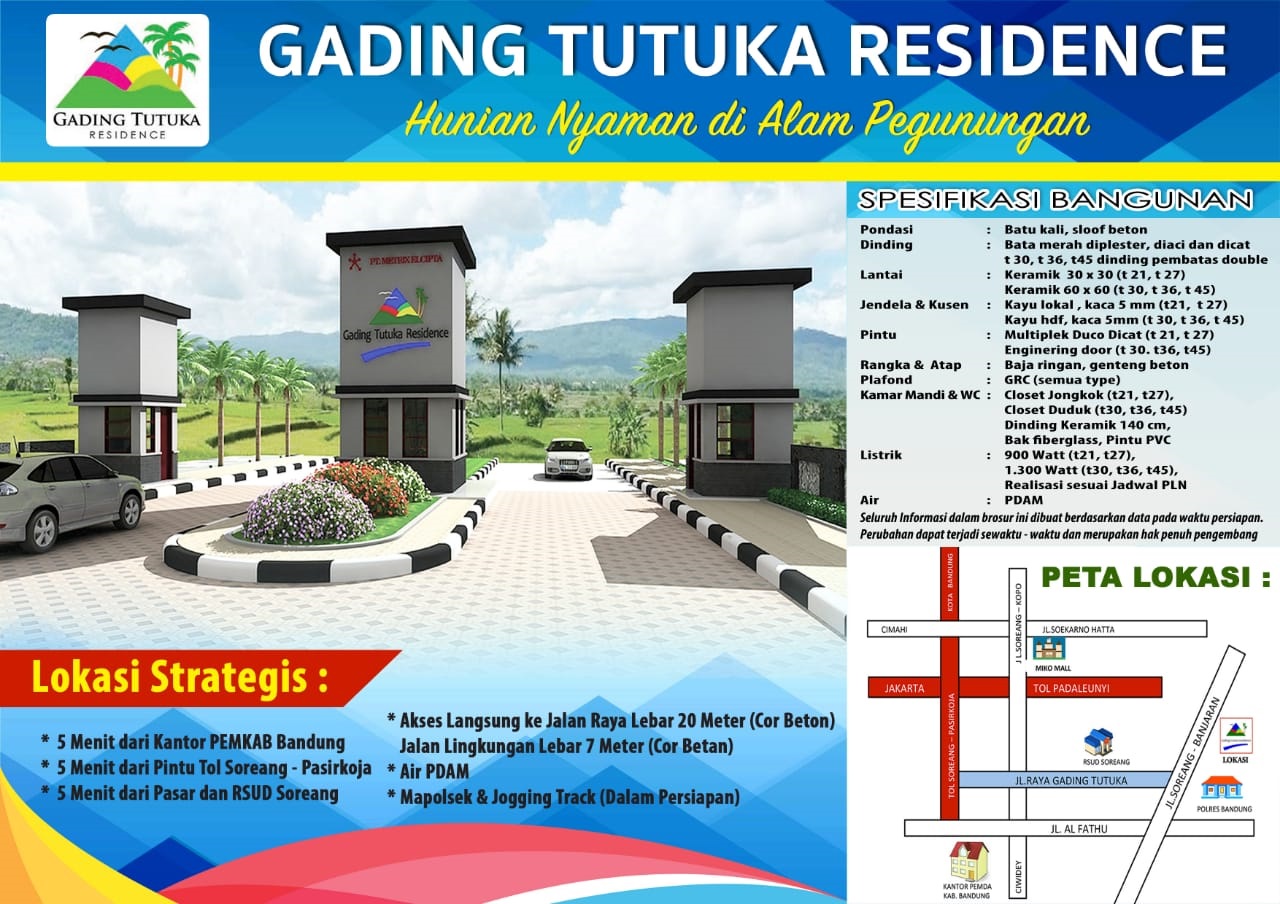 Terletak di Jalan Raya Banjaran-Soreang yang hanya 5 menit dari tol Soroja merupakan salah satu nilai paling dicari orang. Segala sarana tersedia lengkap di sekitar perumahan, mulai dari pasar tradisonal, pendidikan, kesehatan, perbankan hingga wisata.Unit yang dipasarkan mulai dari :