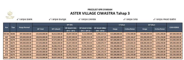 Tercatat tipe 30 tersisa 9 unit terakhir. Dengan harga mulai 260 jutaan saja, termurah di Ciwastra.