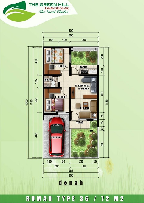 Denah Ruangan Tipe 36_72 The Green Hill Taman si Bolang Perumahan di Bandung