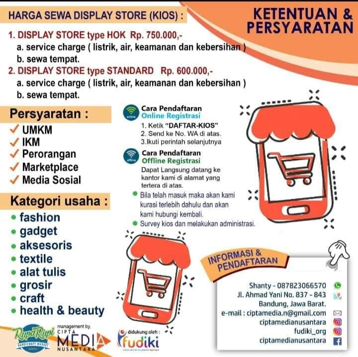 Punya kios memang mahal, tapi Mall yang ini disewakan dengan harga termurah di pusat Kota Bandung. Punya toko online, tapi juga punya toko fisiknya, hal tersebut bisa membuat orang lain tidak ragu dengan keberadaan usaha kita..