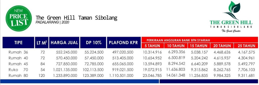 Berikut harga jual dan tabel KPR BTN Syariah :