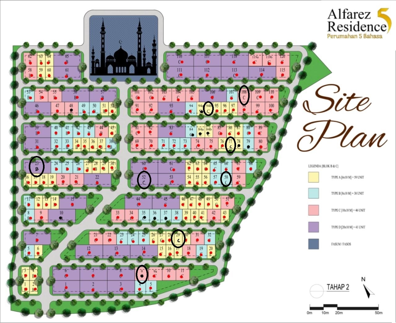 - luas 100 m2 : 2 unit,