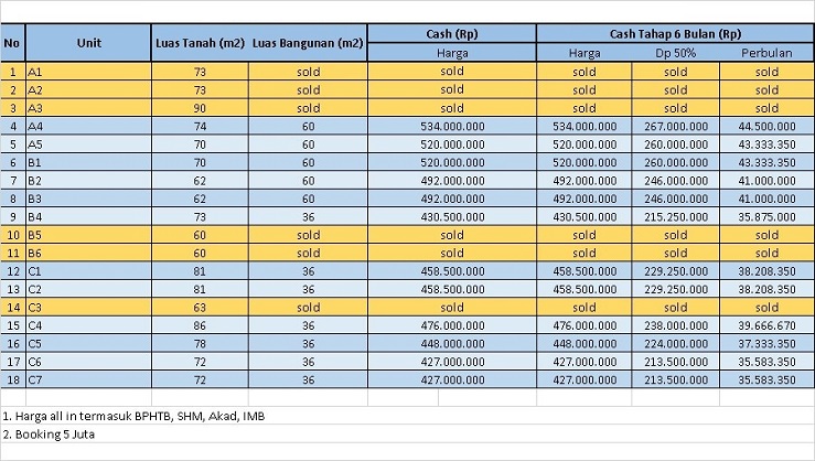 - Tipe 60/62 harga 492 juta (2 unit terakhir).