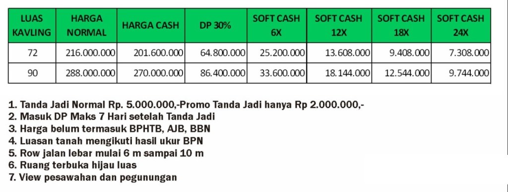 Developer juga menawarkan untuk pembelian kavling siap bangun dengan harga menarik :