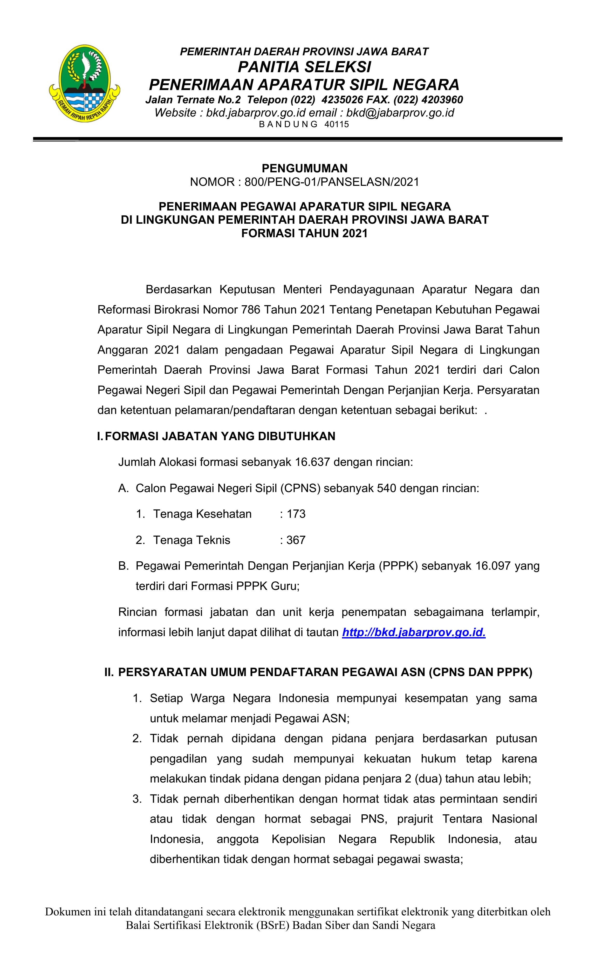 PENGUMUMAN LENGKAP LOWONGAN CPNS DAN PPPK PEMPROV JAWA BARAT