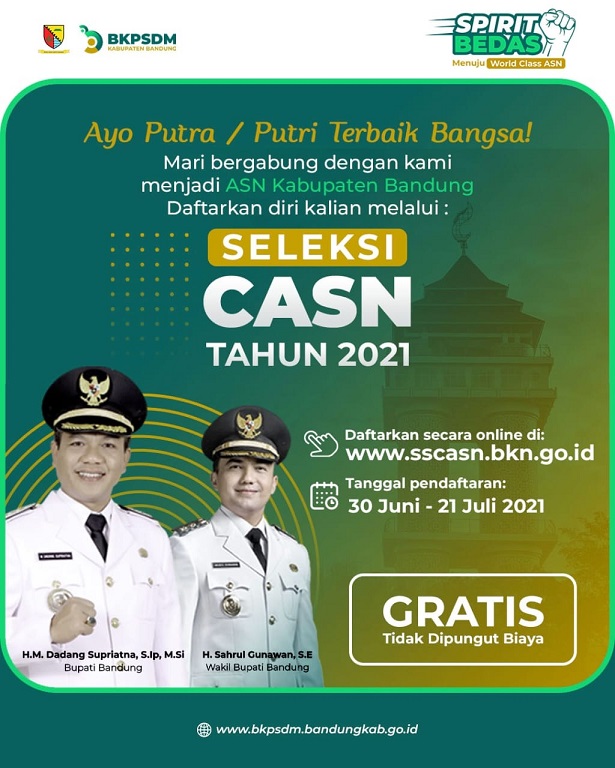 Pemerintah Kabupaten Bandung membuka lowongan CPNS tahun 2021 ini. Adapun rincian formasinya sebagai berikut :