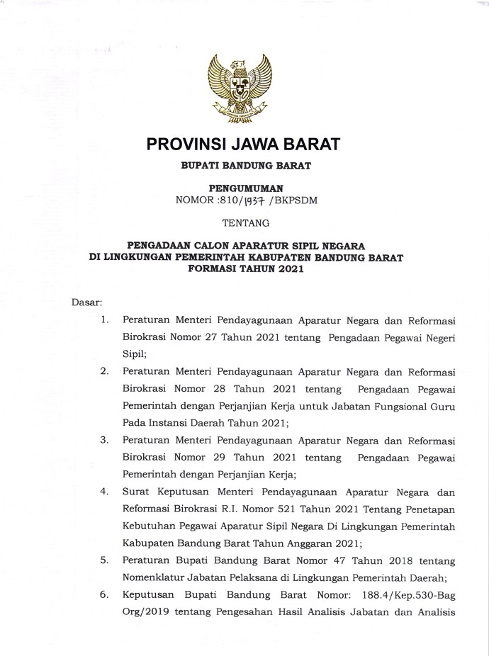[Intermezo] Lowongan CPNS 2021 Pemerintah Kabupaten Bandung Barat