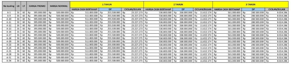 Tipe 36/60 harga normal di 500 juta, developer memberikan diskon besar hanya 395 juta untuk cash keras