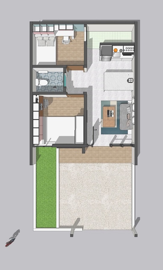 Unit yang dikembangkan didesain agar rumah ini siap huni (buka siap renovasi), karena sudah tersedia dapur dan belakang rumah sudah dibangun dinding.