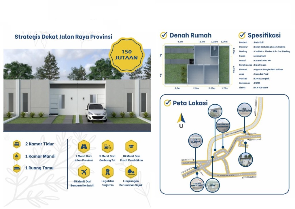 Hunian hanya 2 menit ke akses jalan raya Provinsi dan 10 menit dari kawasan pendidikan Jatinangor.