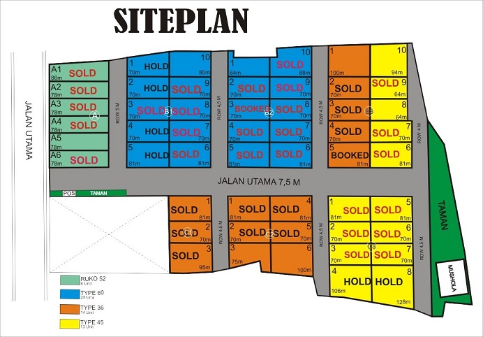 - Ruko tipe 52 (masih tersedia 1 unit), harga mulai 675 juta dan